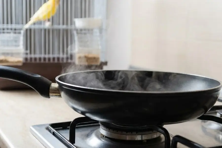 – Non-Stick Cookware (Teflon/PTFE): When overheated (usually above 500°F/260°C), non-stick surfaces release invisible, odorless fumes that cause “Teflon toxicity” or Polymer Fume Fever. These fumes cause the bird’s lungs to hemorrhage, leading to rapid death.